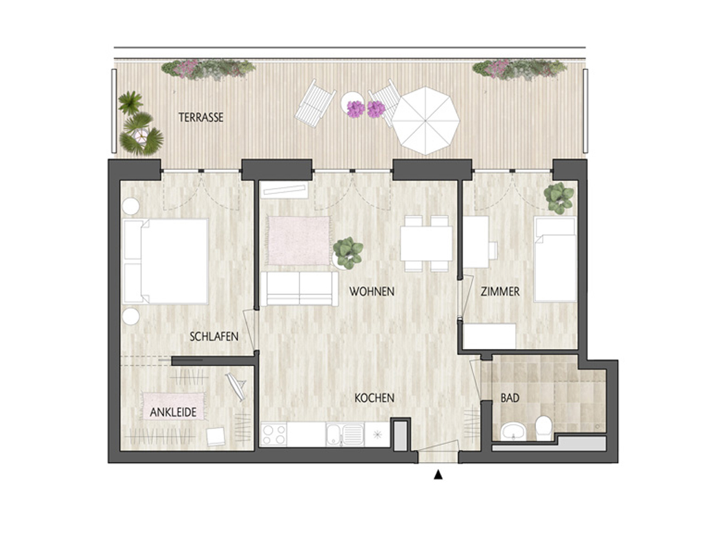 In den 159 barrierearmen Zimmern mit einer Größe von 28 bis 78 m² wohnen Sie zentral und ruhig. Hier findet garantiert jedes Ihrer Lieblingsstücke mühelos einen Platz. Zu jeder klar strukturierten Wohnung gehört ein Balkon oder eine Terrasse sowie ein Kellerabteil für all die Dinge, die in der Wohnung keinen Platz finden. Optional kann einer der insgesamt 34 Tiefgaragenstellplätze dazu gemietet werden.