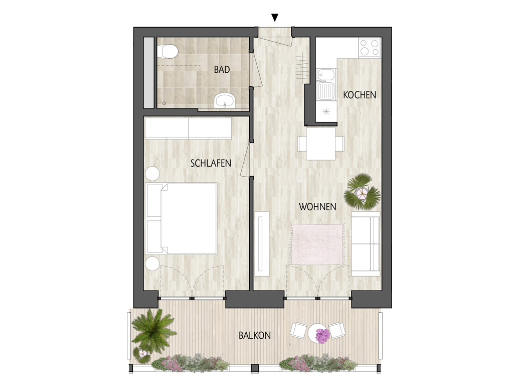 In den 159 barrierearmen Zimmern mit einer Größe von 28 bis 78 m² wohnen Sie zentral und ruhig. Hier findet garantiert jedes Ihrer Lieblingsstücke mühelos einen Platz. Zu jeder klar strukturierten Wohnung gehört ein Balkon oder eine Terrasse sowie ein Kellerabteil für all die Dinge, die in der Wohnung keinen Platz finden. Optional kann einer der insgesamt 34 Tiefgaragenstellplätze dazu gemietet werden.