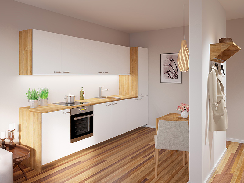Mehr Platz als man denkt. Optimalen Zuschnitt auf kleinstem Raum bieten selbst die attraktiven 1-Zimmer-Appartments.